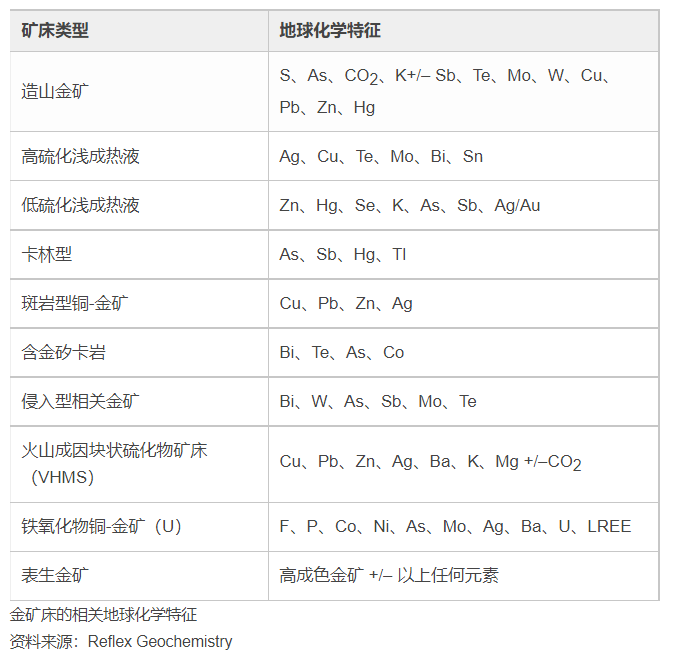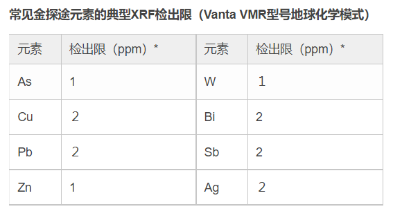 大多數(shù)金礦床都有其特定的地球化學特征(如上表所示)。XRF分析儀可以探測到這些地球化學特征,從而可使地質(zhì)學家更清楚地了解他們正在勘查的地質(zhì)系統(tǒng)。典型的金探途元素包含As、Cu、Pb、Zn、Sb、Bi、Ag和W。