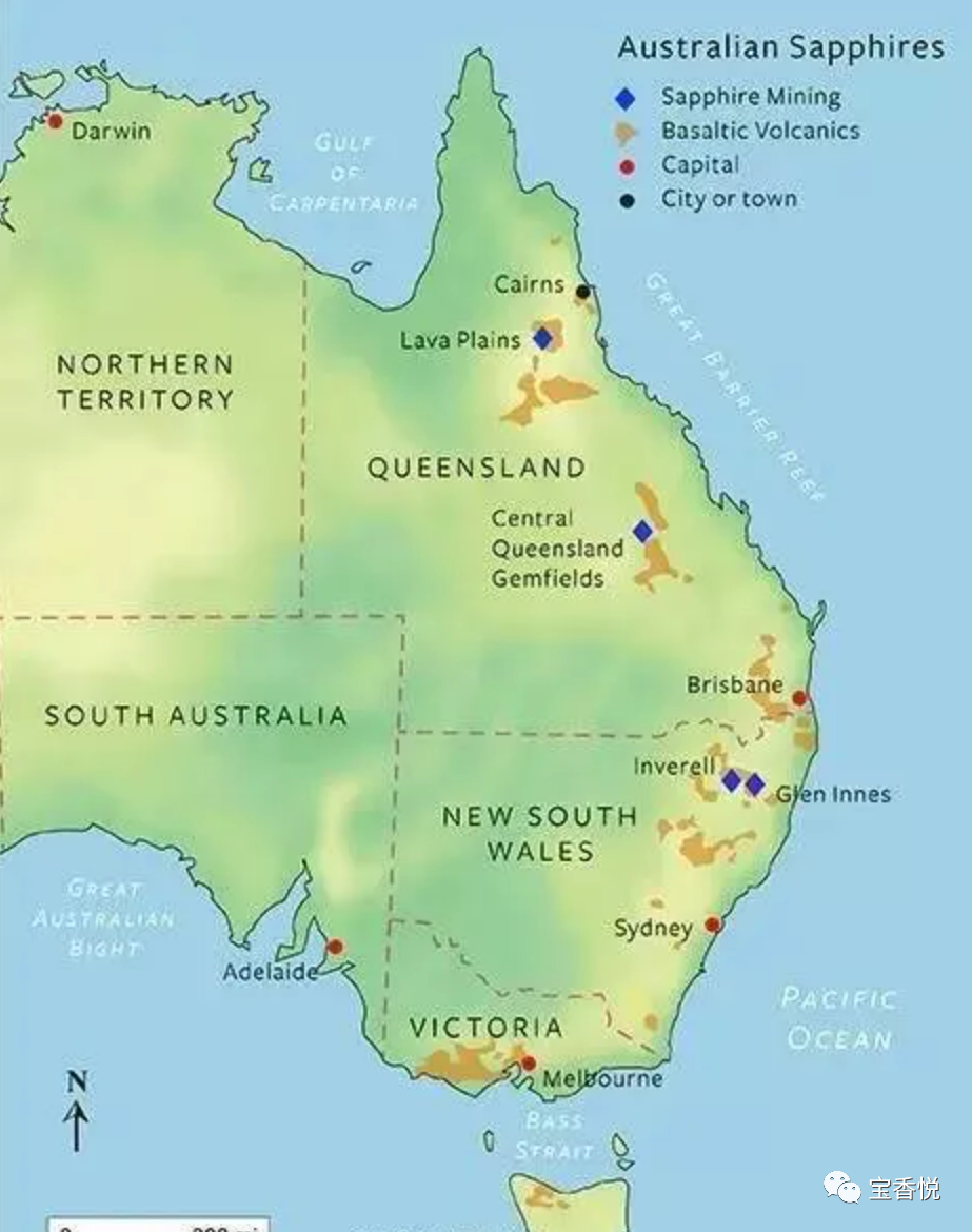 昆士蘭州的安納基及新南威爾士的因弗雷爾-格冷伊尼斯地區產藍寶石,其產量占世界總產量的60%。