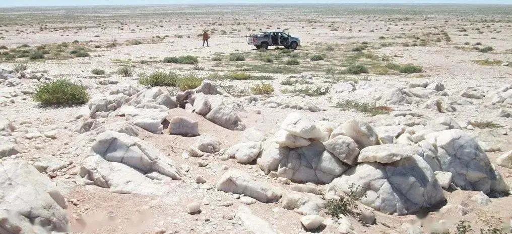 4.1烏姆阿奎尼納礦床礦床位于毛里塔尼亞西部的努瓦迪布灣省(Dakhlet Nouadhibou),西距努瓦迪布(Nouadhibou)港口130km。礦床為熱液脈石英型。礦石呈淺灰色的半透明狀、光滑透明狀,部分采樣礦石的SiO2含量大于99.8%。地表出露的礦體表現(xiàn)為破碎的大塊脈石英礫石,其上覆蓋少量紅土。石英的推斷資源量為500~1000萬噸(Feytis,2010),但因缺少鉆孔驗(yàn)證和測試分析以及必備的選礦實(shí)驗(yàn),可用作高純石英原料的資源量不明。截至目前未進(jìn)行有效的采礦活動(dòng)。