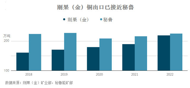 最近的一份報告認為,未來幾年,由于秘魯產量停滯,剛果(金)將占據全球第二大產銅國的位置。鄰國智利仍然是世界最大銅生產國和供應國。彭博通訊社報道,2022年剛果(金)銅出口量為240萬噸,而秘魯銅出口量為220萬噸。