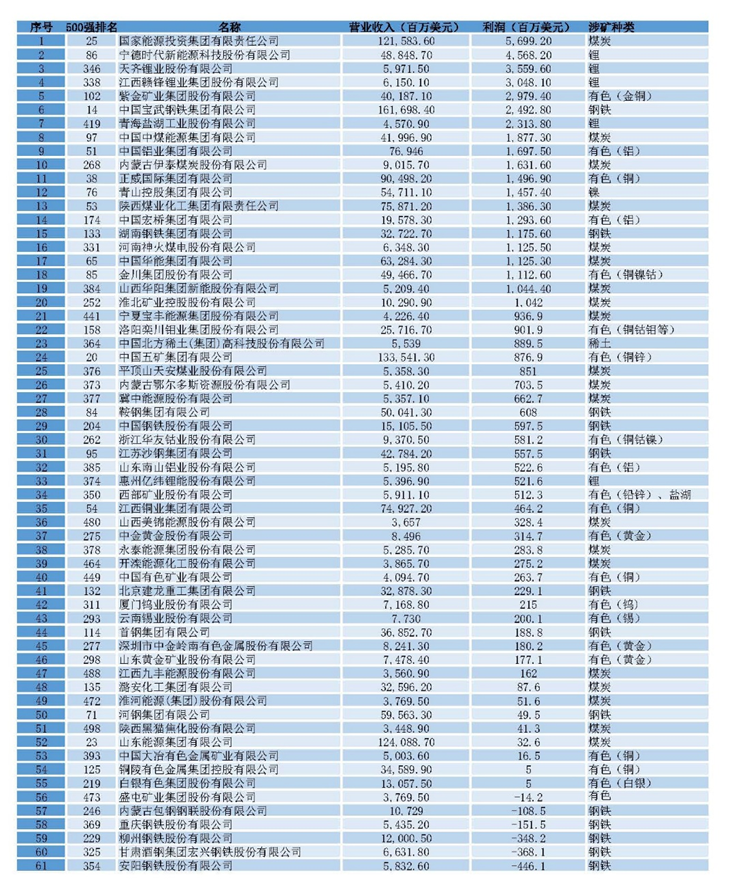 表 2023年《財富》中國500強盈利榜·礦企篇(不完全統計)