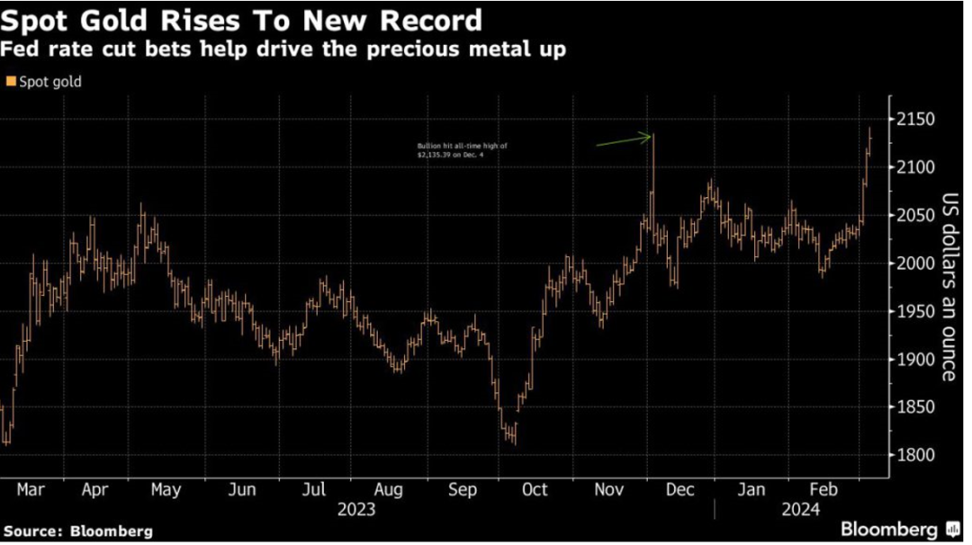 據(jù)多家機構(gòu)預(yù)測,展望2024年的黃金市場,無論是金融屬性還是避險屬性,均有利于金價的上漲,看來黃金,還要乘風(fēng)再飛一會了!