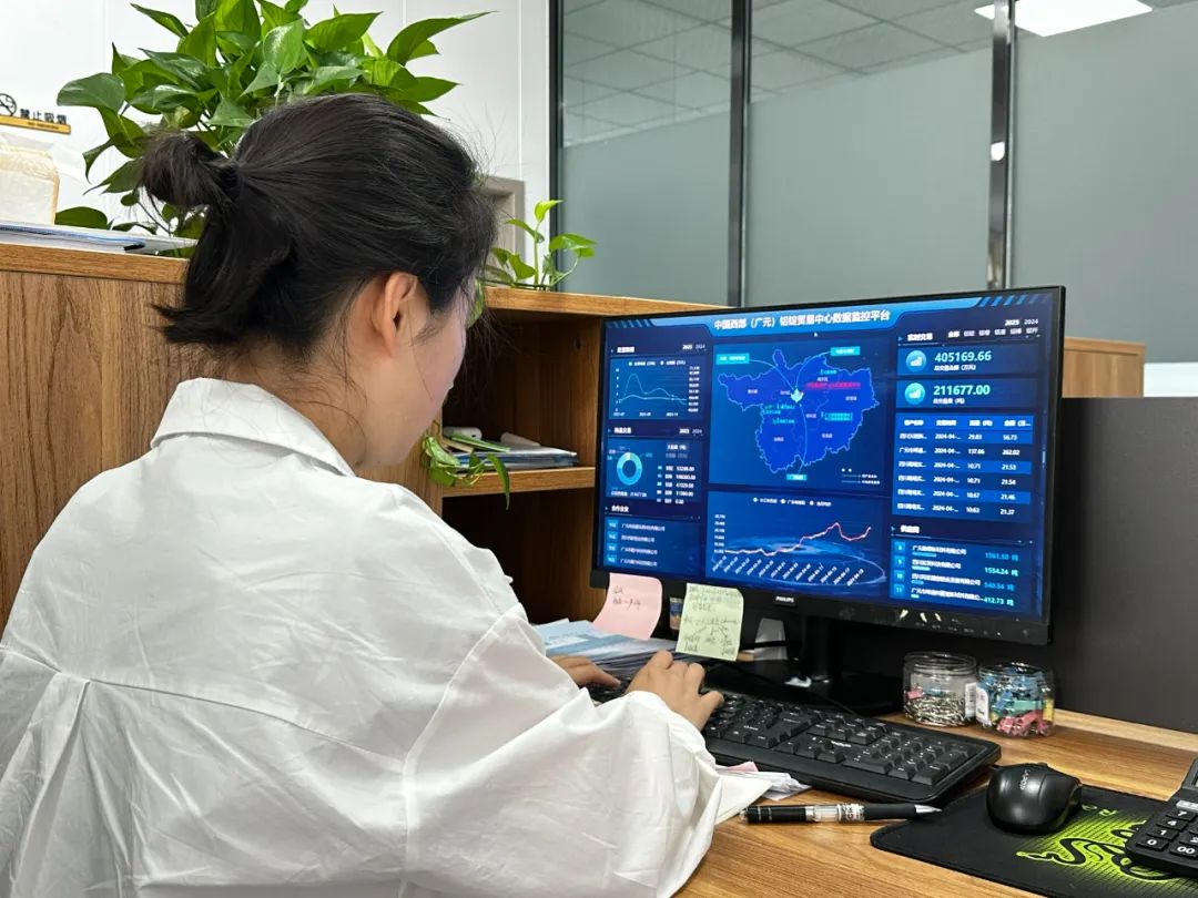 在貿易中心二樓大廳里,LED顯示屏上展示著鋁液交易明細表,以及鋁錠期貨行情走勢。“通過展示,貿易雙方能清晰了解鋁錠交易情況,安排計劃后期交易。”鋁錠貿易中心負責人李繼軍表示。