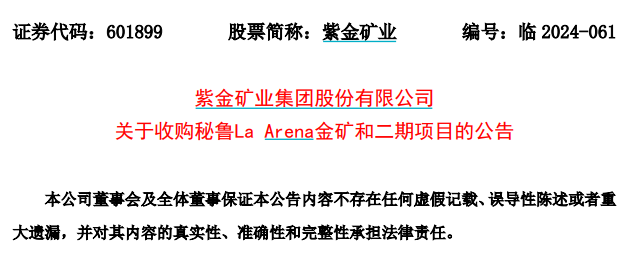 紫金礦業公告截圖