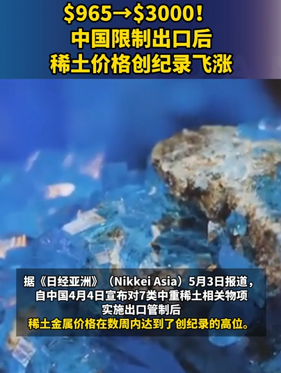 鋱價從每公斤965美元暴漲至3000美元,漲幅超過210%。這一價格水平創下自2015年5月以來的最高紀錄。