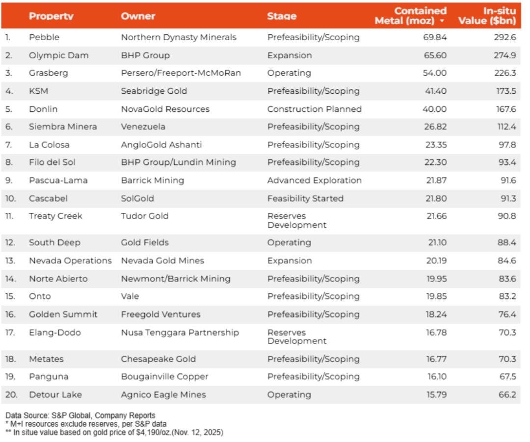11月13日,外媒minging.com在其網(wǎng)站上按黃金資源排名,評選了全球20大黃金項(xiàng)目,顯然這份排行榜要更新一下了!