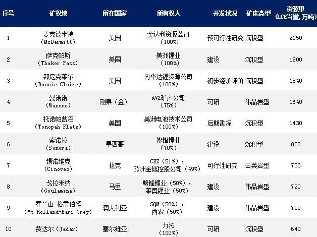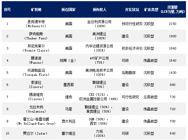 世界前十大粘土和硬巖型鋰礦熱乎公布